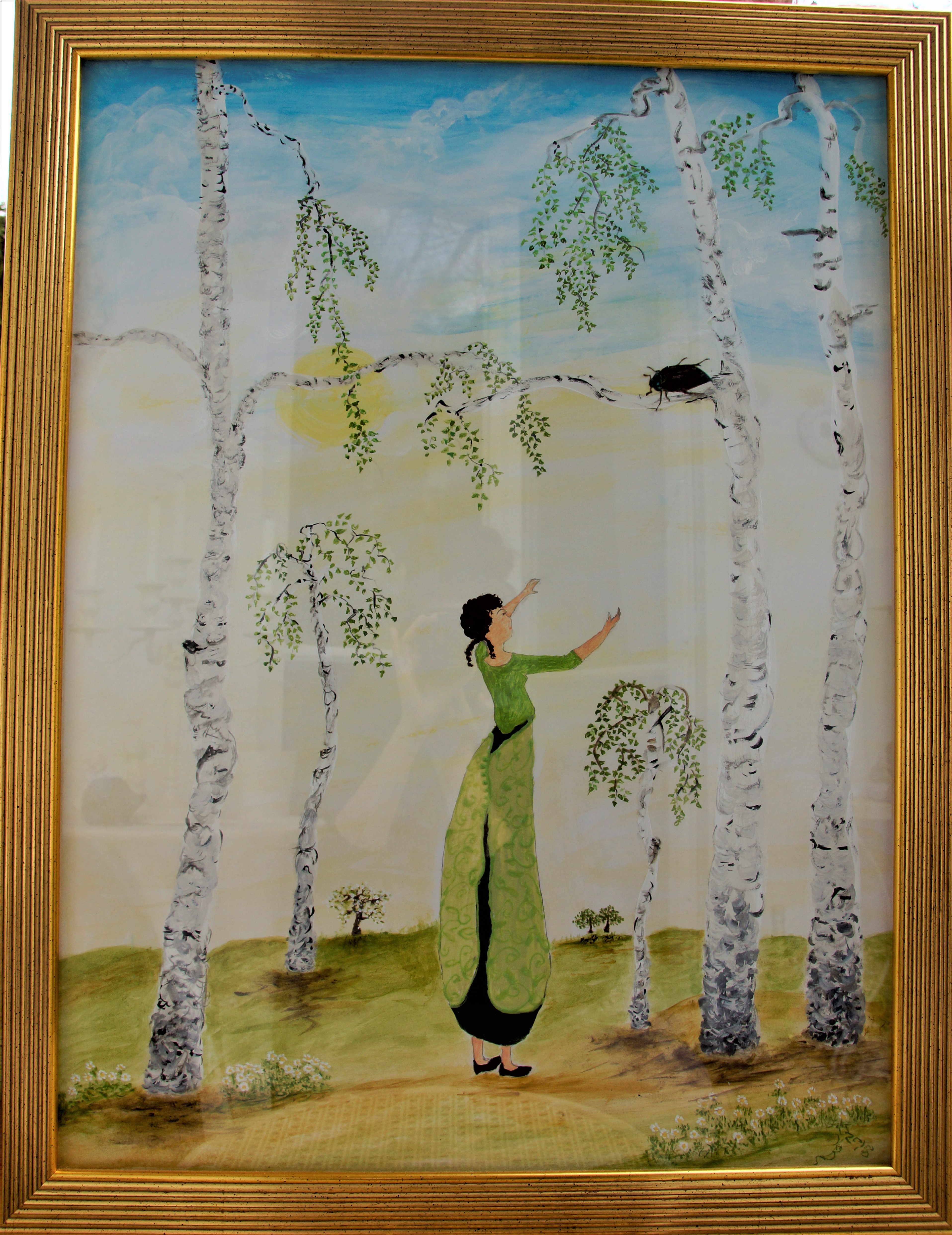 Das 12. Buch von Helga Brunke-Sack zeigt wieder einmal, dass sich in der Künstlerin das Talent einer Malerin mit dem einer Dichterin verbindet. Wie im Buch Mein Symbolismus sind auch hier die Bilder und die Gedichte gleichwertig: Die Bilder visualisieren die erzählten Mythen, die lyrischen Erzählungen erläutern die Bilder. Früher hat man ein solches Verfahren sehr schön als „gegenseitige Erhellung der Künste“ bezeichnet, heute nennt man es „Intermedialität“. Die Götter, Halbgötter, Heroinen treffen sich am Wasser, oft in Begleitung der Musik. Die Musik, als drittes Medium, taucht nämlich im Buch als Motiv auf: Wir sehen die Musikinstrumente, die Musik begleitet die Figuren, sie besingt die Liebe, auch die Liebe zur Natur, zu den Tieren und Bäumen. Der Baum nimmt hier wieder eine zentrale Rolle ein. Wie immer im Schaffen von Helga Brunke-Sack dient der Baum nicht nur als Staffage, er symbolisiert das Leben. Auf dem Bild Mammutbaum (S. 36) ist die Natur gewaltig, die Menschen dagegen so unbedeutend und klein. Deutlich zeigen dies die Proportionen auf dem Bild. In der verträumten Atmosphäre der Mythen entdecken wir auf den Bildern unzählige Details, hier antike Tempel und Statuen auf einem Hügel, Vögel in der Luft und in den Bäumen, dort unzählige akribisch ausgemalte Pflanzen.